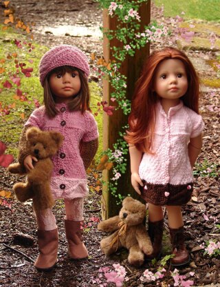 Materials: 142 – 190 yards (52-68 grams) for dress/coat, of Fine # 2 weight or Sport/DK equivalent (includes contrast) and 33 – 50 yards (12-20 grams) for headband/hat