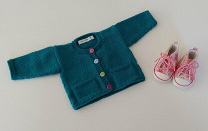 I designed this fun cardigan for the grandaughter of one of my lovely customers ... A gorgeous bright colour for summer days or to cheer up a winter one ... Add mismatched buttons for individuality or have them all the same ... Knit on 2 needles and seamed with inset pockets to hold little treasures ...