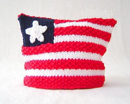 Knit a red white and blue flag hat to wear to the Fourth of July parade this year! The hat is knit flat in 2 pieces and then seamed together using a 3-needle bind off. The stars are done in crochet.