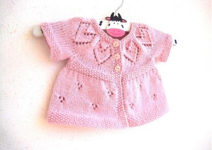 - A pretty baby & girls cardigan with a gorgeous Love-Heart lace yoke. Knit in one piece seamlessly from the top down with a pretty lace pattern using DK weight yarn.