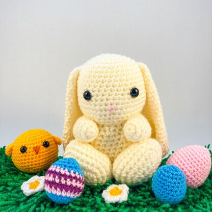Betsy the Bunny is an amigurumi rabbit crochet pattern. 7 inches tall when made with chunky weight yarn and a 4mm hook. The pattern consists of a 4 page PDF with written instructions and photo tutorials. This pattern is suitable for beginner/intermediate crocheters, you can find a list of the techniques used below. You can easily change the size of your bunny by switching to a different weight yarn and hook.