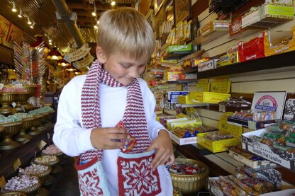 If there is anything kids love more than pockets, it’s stuffing things into their pockets – heavy, pointed things that can stretch out and poke through knitted fabric before you ever have a chance to object. This cheery scarf is designed with that kid in mind. The scarf has pockets at both ends, each reinforced with a plastic CD sleeve for a lining.