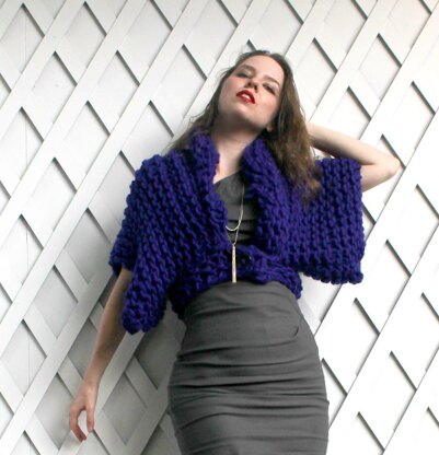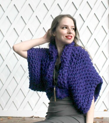 The body is knit side to side. Stitches are picked up for the collar and waistband with a button closure.