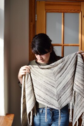Bétula is a very simple triangular shaped shawl that features rows of stockinette and garter stitch. The pattern is worked in three different sections: the very first one alternates rows of stockinette and garter stitch, making it the most meditative and intuitive knit. Then the shawl is divided into two parts: one half of the stitches are put on hold while the other half are worked in garter stitch using short rows. Then when the first half is completed, the stitches that were put on hold are worked in the same manner as the other half.