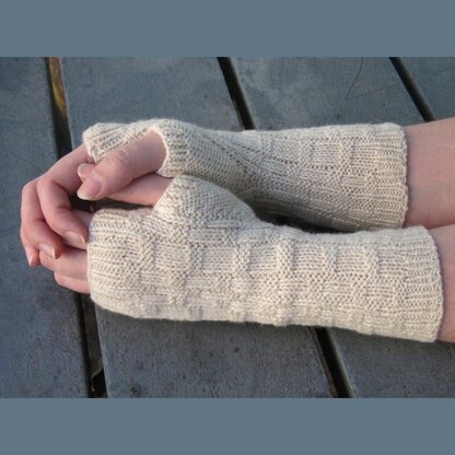 Perfect for keeping your hands nice and toasty during your favorite outdoor fall fiber festival, these fingerless gloves knit up quickly in a sophisticated motif of simple knits and purls. Worked in the round from the bottom up, a gusset for the thumb is formed as you go, leaving minimal finishing to be done after casting off. Fully customizable for length, this pattern includes instructions for mirror-image gloves, adding to the thoughtful details of this easy pattern.