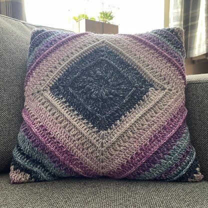 Worked from a single ball of colour changing yarn, the cushion construction transforms a simple pattern repeat into a stunning item. Stitch charts can be found beneath the written pattern. A guide to choosing the appropriate cushion pad size for the size of the finished crochet piece is also provided.