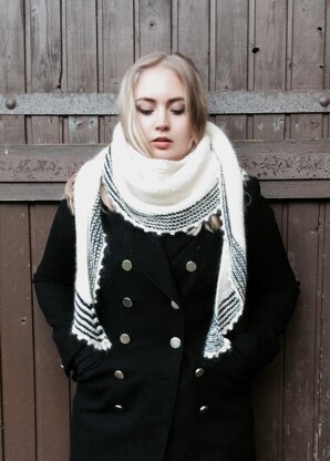 Bielha is a crescent shaped garter stitch shawl knitted top down. The shawl is knitted holding one strand of kidsilk and one strand of sport or lace weight yarn together. For the stripes you can use some accent yarn or only the kidsilk. The pattern has instructions for both picot and modified picot/bobble bind off.