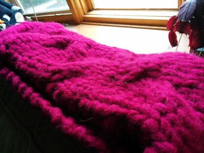 The semi-random cables scattered across the stockinette background give a sculptural feel to the fabric, which is knit at a fairly dense gauge.