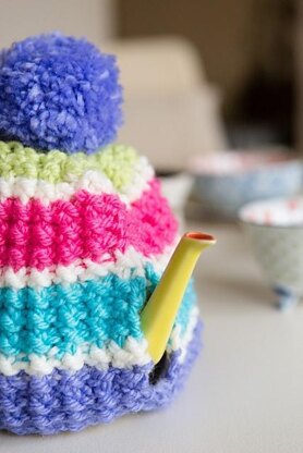 Bring the summer indoors with this bright, bold and textured tea cosy.