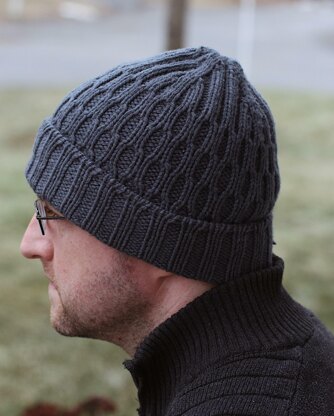 The hat is worked top down, starting with crown shaping, then the body of the hat is knitted with 1 x 1 cable patt. There are three brim options: folded cuff, no cuff, and earflaps.