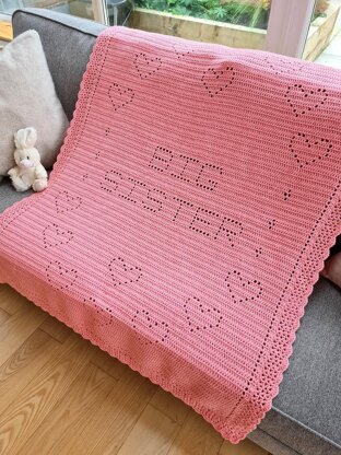 Make your little girl feel extra special with her own Big Sister blanket, as she welcomes her new little baby brother or sister into the family. This blanket is bigger than a baby blanket, so is perfect for a toddler or bigger child. And it complements perfectly the Little Sister and Little Brother crochet baby blankets that would make the perfect gift from their older sister to give to a new baby or to give as a baby shower gift.