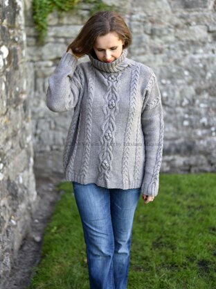 Big Temptation Sweater is comfortable oversized garment which keeps you warm and cozy even the coldest winter days. The sweater has classic boxy silhouette and pretty cables combo. It is knitted back and forth with minimal shaping. The sweater is designed with positive ease about 25 – 30 cm/ 10 - 12 inches, dropped shoulder and long neck. All parts of the sweater: back, front and sleeves are knitted separately. After the shoulder seams are completed, the stitches are picked up for collar which is knitted in the round.