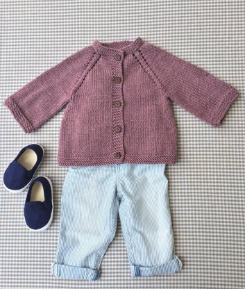 Worked from the top down, this simple cardigan has raglan shaping and garter stitch edges. Front bands and buttonholes are worked as you go. Because the sleeves are worked in the round, there are no seams to sew. Bigwig is the perfect blank canvas for whimsical buttons.