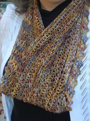 “Bird Gets the Worm” is a lace cowl worked in the round designed for fingering weight yarn. The body is worked first, then the edging is knit onto both sides. It blocks very big and open, and it is reversible. The pattern includes both written and charted instructions.