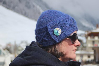This hat and mitts are inspired by vintage hats and by traditional cable and argyle patterns that would have been familiar to my great aunts. The slightly tweedy yarn also has a vintage feel and is the right level of cosy for winters today and even a walk in a snowy alpine town. The hat is constructed by knitting the cabled band first and then picking up stitches for the crown. It is a surprisingly easy way of making a hat that fits well and looks great.