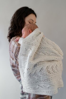Fresh as a spring breeze, this delicate rectangle is offered in several sizes (large scarf/stole/baby or lap blanket/throw) to provide multiple options. Work in soft, bouncy fingering or sport yarn to create a welcoming heirloom gift for a new addition to the family. Choose a silkier yarn for that special bridal or prom accessory. May also be worked in heavier yarns with needle adjustments.