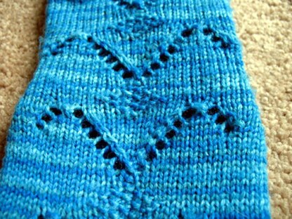 These cuff-down socks feature a zigzag lace pattern that looks like birds the way kids draw them flying in the sky. The lace birds are set off by seed stitch diamonds and flanked by seed stitch borders. It’s a warm, nature-inspired design that works for every season. A short-row heel and easy-to-follow charted design are simple enough for a new sock knitter to execute and still interesting for the advanced knitter. You’ll be surprised at how quickly they knit up