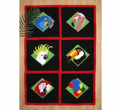 Individual squares are crocheted in all single crochet following easy color-change graphs. Must be able to follow graphs.