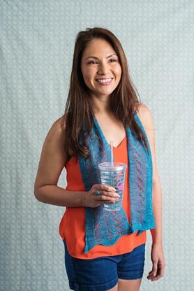 Get beach ready with this delicate scarf that feels as light as air! Featuring two spirals down the center of the scarf, you’ll need two larger needles to create the flouncy edge. It makes the perfect design for an introduction to lace!