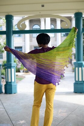What would happen if I worked beads in gradient on a yarn that is also a gradient? That is the question I asked myself and this shawl is the answer. A little bit of texture plus a little bit of lace allows the beauty of the yarn & beads to shine through.