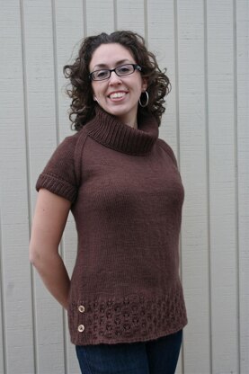 Black Eyed Susie is a simple hip-length sweater that is perfect for pairing up with leggings, jeans, or skirts, which means you can wear it practically anytime and anywhere. Buttons are placed along the bottom sides for decoration and function. If you make your sweater fitted (with negative ease) buttons may be left open to allow more room through the hips. Photos show the buttons closed and modeled with slight positive ease.