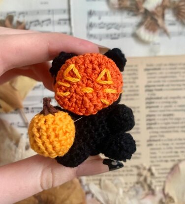 This is my pattern for Jackson the Cat, he is Halloween themed and accompanied by a little pumpkin and mask, how to make these accessories are included in this pattern!