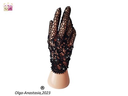 Modern crochet Irish lace pattern - Black lace finger gloves . A detailed pattern for all crochet motifs - a graphic diagram, a photo and a verbal description of each crochet row. PDF file for 44 pages Design work by Starostina Olga.