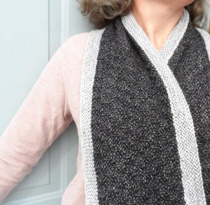 A reversible textured pattern reminiscent of a bowl of blackberries is edged with simple garter bands in this long cowl. The garter border can be done in the same color as the center or in a contrasting color.