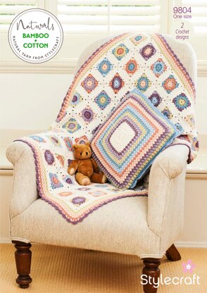 Blanket and Cushion in Stylecraft Naturals Bamboo & Cotton DK- 9804 - Downloadable PDF is a Intermediate Crochet pattern by Stylecraft, available as a Downloadable PDF and includes instructions in English. Super fun to make, this pattern could be your next masterpiece!