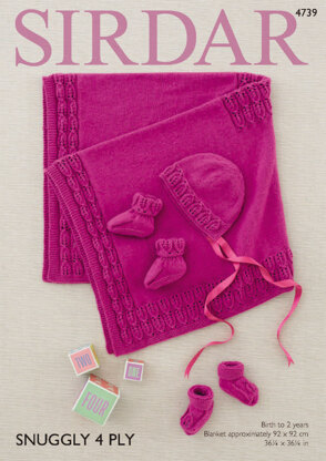 Blanket, Bonnet and Bootees in Sirdar Snuggly 4 Ply - 4739 - Downloadable PDF