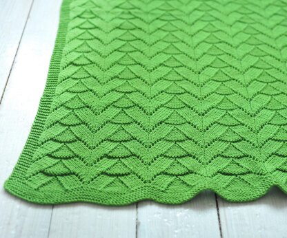 Beautiful lace blanket pattern for an intermediate level knitter. Baby blanket knitting pattern established for a baby but you can make it bigger by adding more repeats. This blanket is knitted in one piece and it is reversible. The wrong side of the blanket looks different from the front. But at the same time it looks no less beautiful. You can see it in the photo.