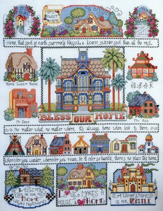 By Barbara Baatz Hillman. We always say “Love makes a house a home” and this charming Bless Our Home Sampler by designer Barbara Baatz Hillman is filled вЂchock a block’ with adorable little houses of every size and style. The variety of homes illustrated include a tee pee, lighthouse, castle and log cabin. There is something for everyone in this inviting and detailed sampler. These little motifs can be used separately on small projects or all together in one fabulous sampler.
