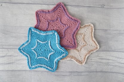 Blessed Three Star Coaster is a great first project to learn Tunisian crochet in the round technique using double ended hook. It works up fast, which makes it a great last minute gift idea and perfect stash-busting option. The best results are achieved by selecting similar colours.