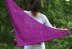 The shawl is worked with a slight bias from one tip to one long (side) edge, with the wingspan being the right edge of the work. This construction allows you to keep knitting until your desired size. Thus, the shawl is very customizable and will work with almost any yarn; adjust yardage and needle size accordingly.