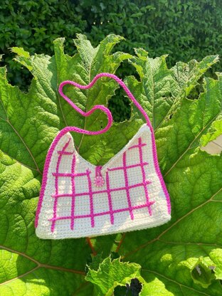The handle is worked as an extension of the surface crochet worked up the sides of the bag.