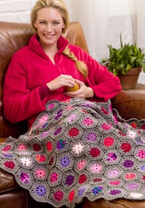 Blooming Hexagons Throw in Red Heart Super Saver Economy Solids - WR2086