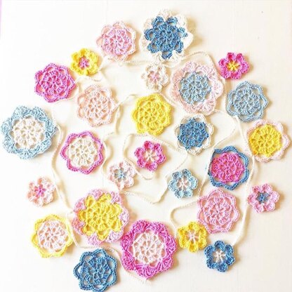 This pretty garland is inspired by vintage doilies, pretty pastel colours and blossom dancing in the breeze on warm sunny days.