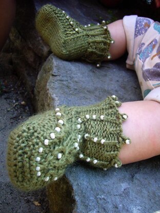 These darling toe-up baby socks will delight you! Using clever shaping and a gussetless structure inspired by Cat Bordhi's New Pathways for Sock Knitters, you will find this the perfect knitting diversion, and the perfect gift for a little angel.