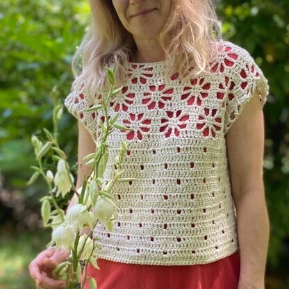 It’s is beautiful openwork summer sweater. Pattern includes written instructions and many photos to show you the process step by step. Very easy to follow. Blossom sweater is worked top down so you can easy control the lenght.