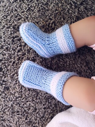 Gorgeous booties for babies. These ankle high baby booties are ideal for newborns. Booties anatomically correctly sit on the feet of the baby. The elastic of the booties is quite high and soft, and the heel of booties match with the heel of the newborn.