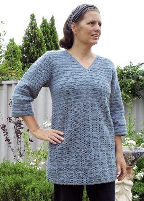 This versatile tunic looks great paired with jeans or leggings, and just add a simlpe camasole or maybe long sleeve tee underneath for extra warmth...easy to make longer or shorter by simply detracting or adding to the length worked for the skirt...this pattern is written in U.K. crochet terms and dk yarn can be used as long as the tension is correct...