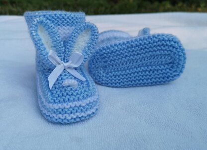 Gorgeous baby bunny booties. These ankle high baby booties are ideal for newborns. Booties anatomically correctly sit on the feet of the baby. The elastic of the booties is quite high and soft, and the heel of booties match with the heel of the newborn.