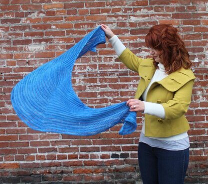 Blue Escalera is a classic crescent shawl with simple drop lace and garter sections.