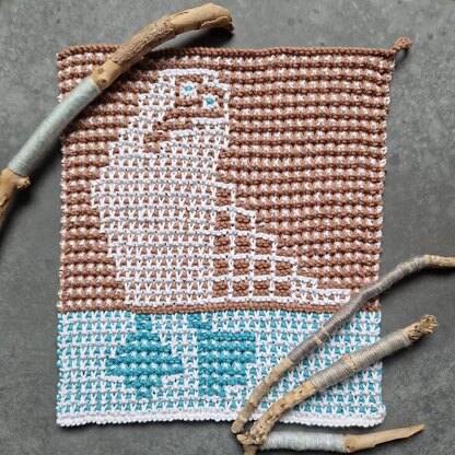 These washcloths are knitted back and forth in rows using the mosaic technique, with knit and slip sts.