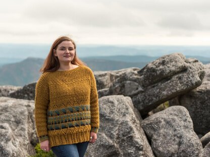 The Blue Mountains of the North is a drop sleeve, knitted bottom up sweater that is all about texture! Unquestionably, this sweater was designed with fall in mind. I envision the sweater to be layered over linen dresses or to be worn with your favorite jeans. There’s no boredom in this pattern--keeping things interesting, making for a fairly fast knit! Overview After the initial cast on (2 separate pieces), you quickly join in the round for a mountain explosion. There’s a little bit of everything: twisted stitches, mosaic knitting + slipped stitch color work for the mountains, short rows to create simple shoulder shaping and 1x1 twisted ribbing.