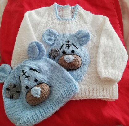 Blue nose bear Jumper and matching Hat sizes 0-3 & 3-6mths