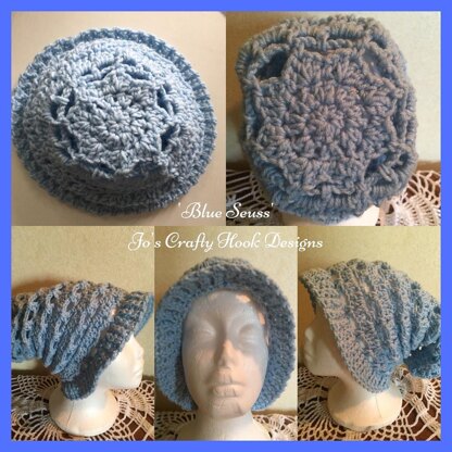 I had kids in mind when I was designing the Slouchy part of the hat. When I was finished my daughter and husband both said it looked like a Dr. Seuss hat, so I named it "Blue Seuss."