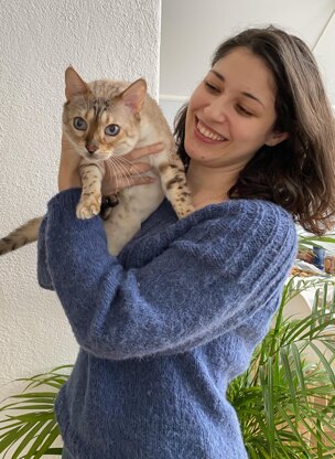 This basic top-down knitted jumper features a seamless ribbed yoke worked in the round in rib and shaped with a increases. Back of the jumper is risen up with a couple of Short Rows to shape maximal comfortable fit. Body and sleeves are worked in Stockinette stitch and finished with few rows 1x1 rib. The sleeves on The Blue Star jumper are bracelets long and worked with decreases.