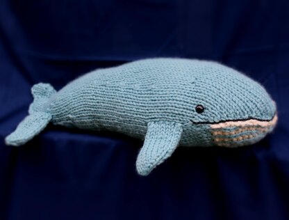 Real blue whales are the biggest of them all, regularly growing to around 100 feet long! Our little whale comes in at just under 2 feet, but he’s the perfect size for snuggles. If you want a whale that’s going to use a little less of your polyfil stash, consider making him in a thinner weight yarn on smaller needles. To make the whale you will need knowledge of basic increases and decreases and be able to knit in the round on double pointed needles. The whale uses about two balls of MC (blue) and less than one ball of CC (white).