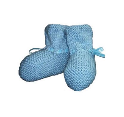 This is a very easy set to make. The hat is worked in the round. The bootees are knitted flat with a 3-needle bind off along the sole.